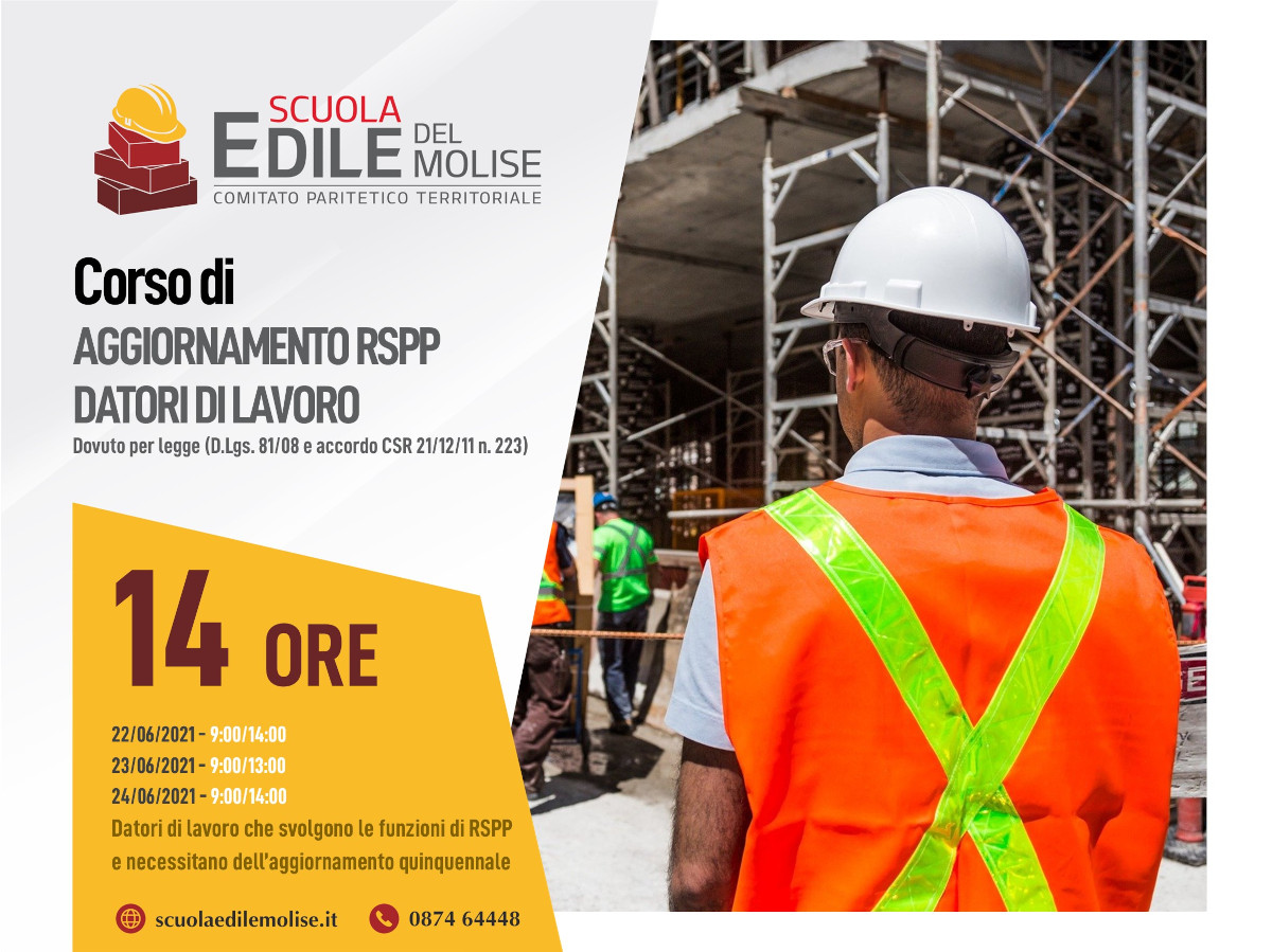 - Destinatari: datori di lavoro che svolgono le funzioni di RSPP e necessitano dell’aggiornamento quinquennale