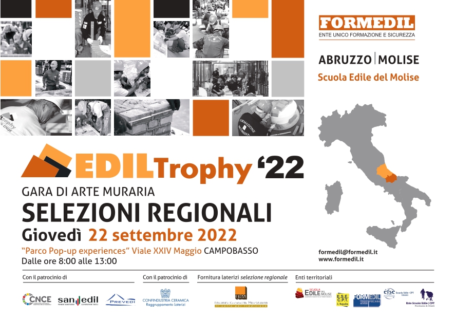 Giovedì 22 settembre 2022 (dalle ore 8:00 alle 13:00) si terrà la gara di arte muraria presso il “Parco Pop-up experiences” di Viale XXIV maggio a Campobasso.